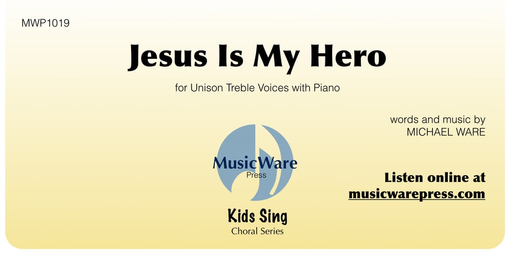 Jesus Is My Hero is the finale of Michael's kids musical Heroes of Faith. It reminds singers of Jesus birth, death and resurrection in an engaging and fun way. Download includes PDF score with accompaniment, PDF voices only part, MP3 listening demonstration and MP3 accompaniment track. You are licensed to make as many copies as needed for your performance purposes. Files are delivered to your email address.